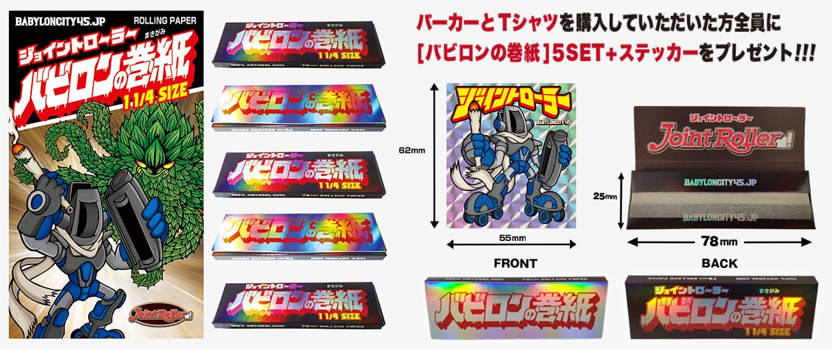 [バビロンの巻紙]×5冊セット 78mmプリズムローリングペーパー BABYLONCITY45がお届けする コンパクトジョイントローラーの78mmサイズに 合わせた巻紙です。 燃焼速度は遅めで味を損ねない薄型ペーパーとなります。 medium size:78 x 44mm 1冊 33枚入り×5冊セット 100%ナチュラルオーガニック ( 無添加 • ケミカルフリー )/スローバーニング ( 無漂白、燃焼材不使用 ) [バビロンの巻紙]のパッケージ台紙は 耐候・耐水性バツグンのPVC素材の ステッカーとなっております。 BABYLONCITY45.JPの スペシャルプリズムステッカーをお付け致します。 商品内容: バビロンの巻紙1冊 33枚入り×5冊セット 台紙ステッカー プリズムステッカー